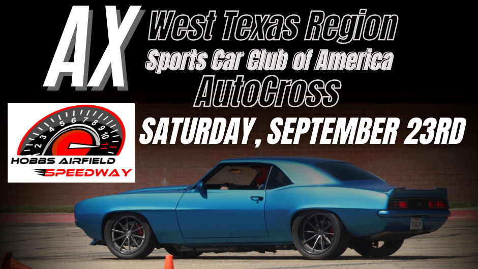 Our Autocross #5 event is Saturday, September 23rd at Hobbs Airfield Speedway! Please be there by 9:00am to ensure you have time for registration check-in and help set up the course! By helping set up, you will know the course better, and you will be able to drive it faster.